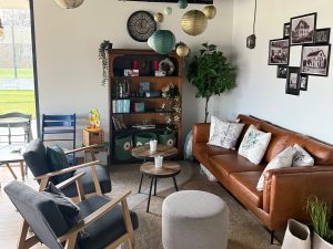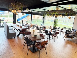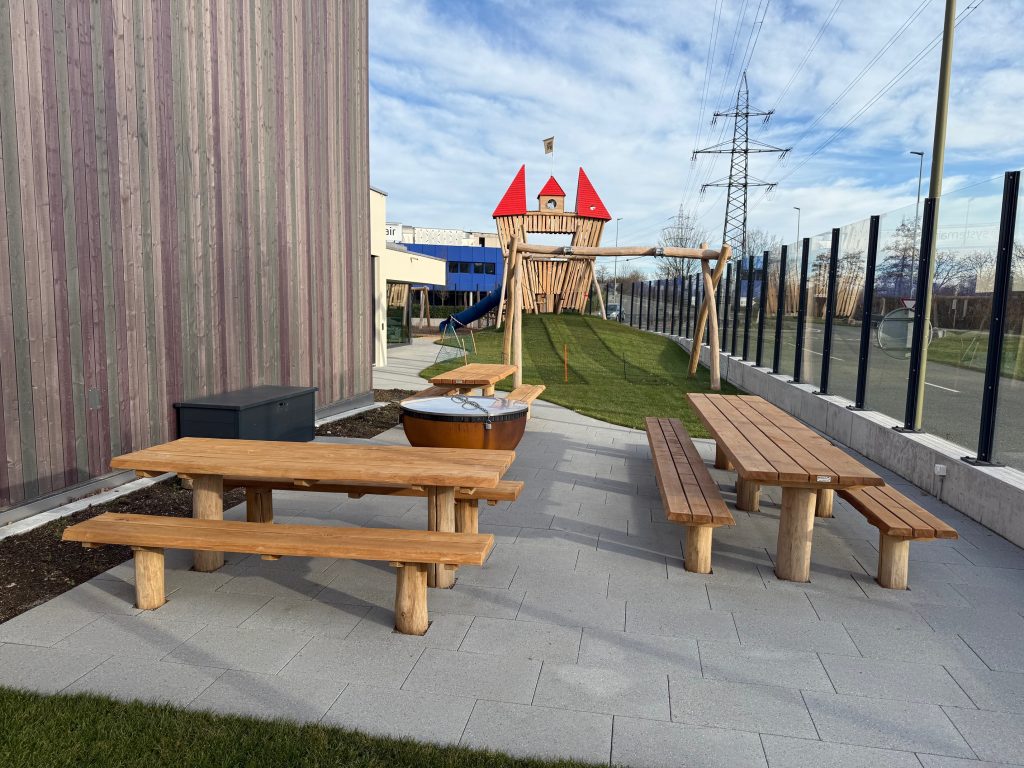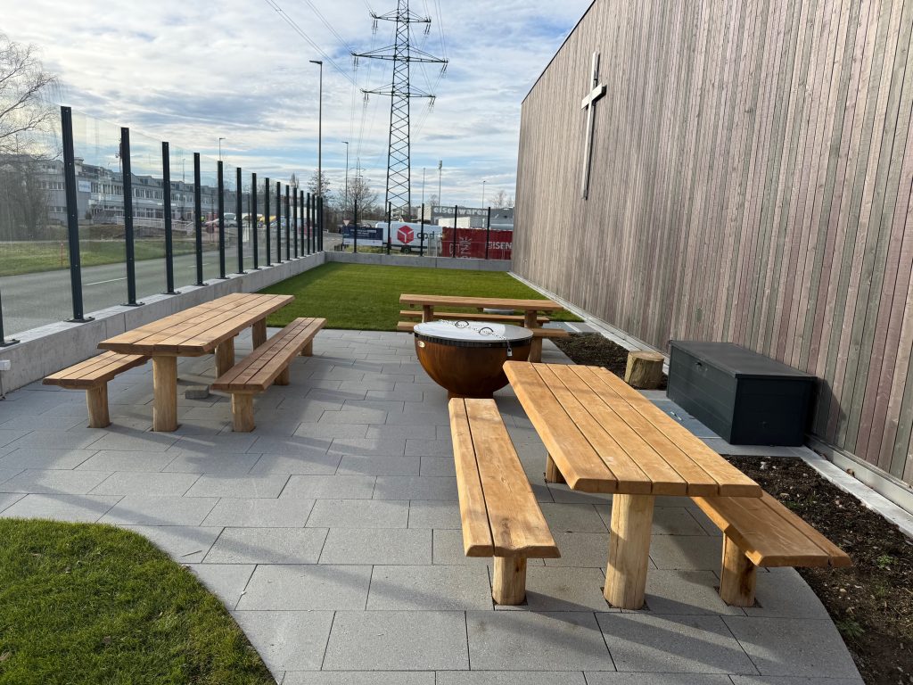 Gemütliches Flair in Sitzgruppen für ca. 40 Personen (Kühlmöglichkeit vorhanden, keine Koch-/Aufwärmmöglichkeit), mietbar am Samstag, Montag, Dienstag.