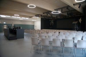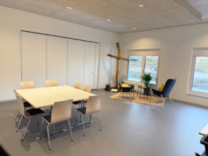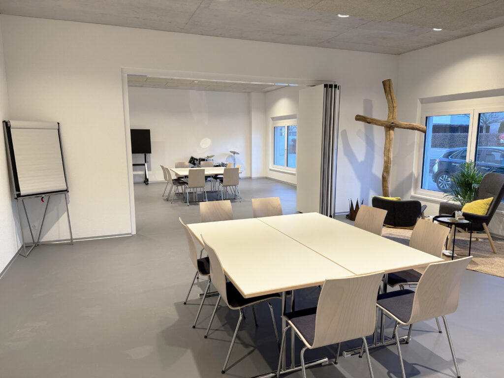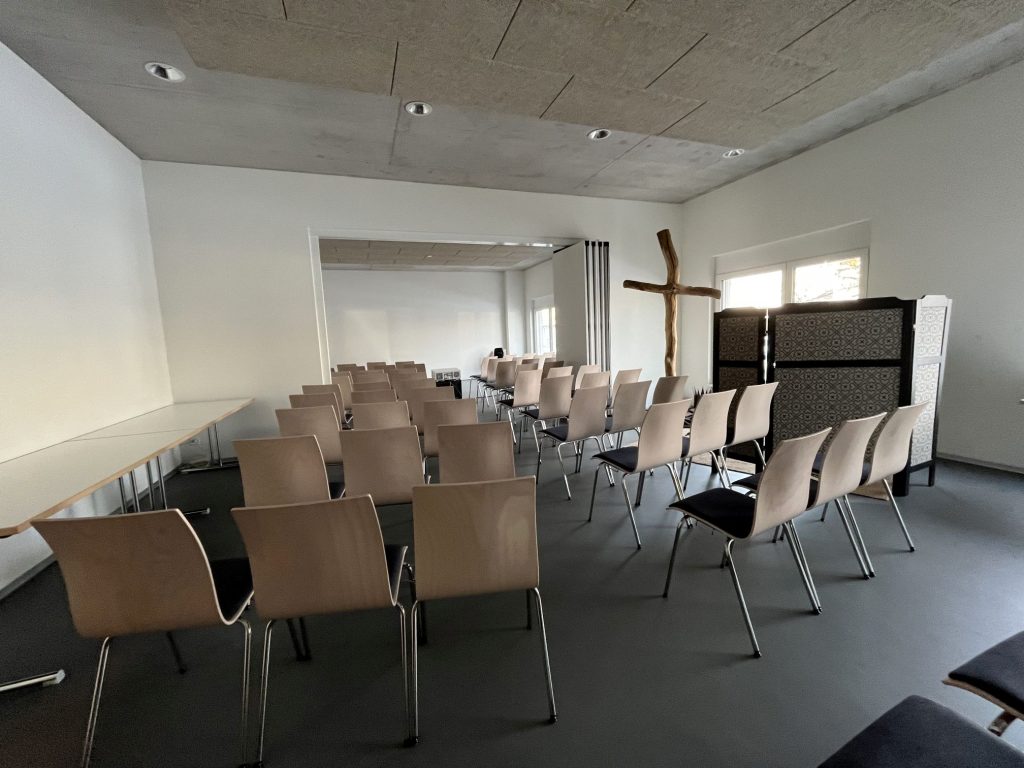- Seminarraum bis 30 Personen (EG1 und EG2, 95 m2, 60 Personen in Konzertbestuhlung), optional mit Bildschirm: 80 CHF/h