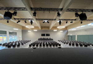 Technische Grundausstattung (2 Stabmikrofone, optional kleine Beamerleinwand) ist inbegriffen. Professionelle grosse LED-Wand, Licht- & Soundtechnik kann zusätzlich gegen Aufpreis für den Einsatz unserer Techniker (40 CHF/h) angefragt werden.