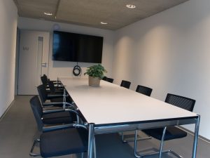 - Sitzungsraum bis 10 Personen (22 m2) mit grossem Bildschirm: 40 CHF/h